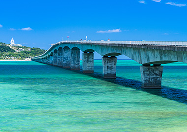古宇利大橋は、全長約2kmの海上道路で、車窓から見えるエメラルドグリーンの絶景はまさに感動もの!無料で渡れる日本一長い橋としても有名で、ドライブはもちろん、徒歩で海風を感じながら渡るのもおすすめです。